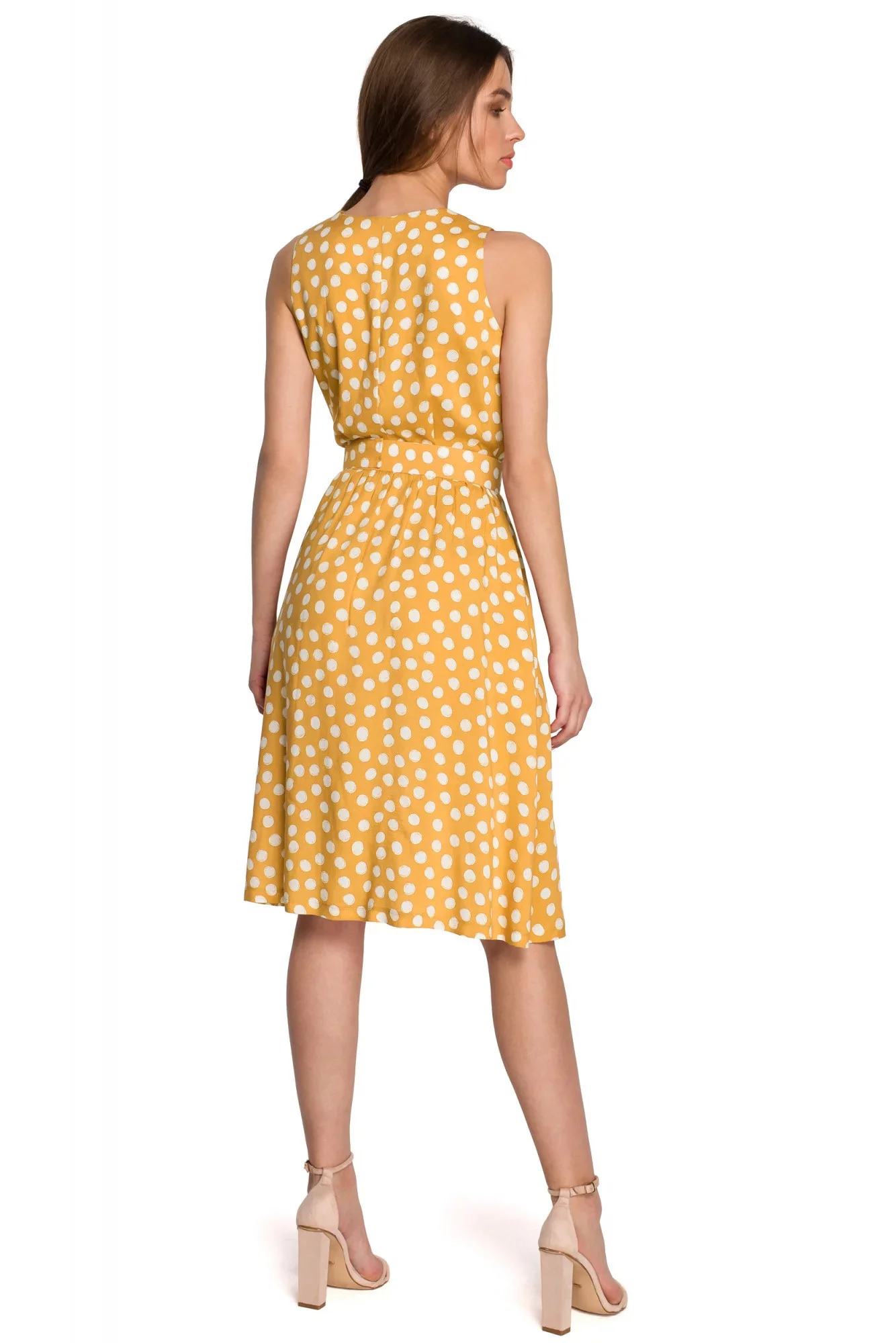 Dámské košilové šaty na knoflíky - model 1 B259 Tmavě oranžová se zelenou vzor - BeWear