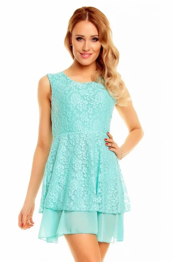 Dámské krajkové šaty na ramínka s páskem středně dlouhé tmavě modré - Tmavě modrá - MAYAADI