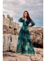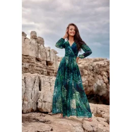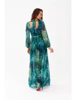 Dámské dlouhé letní šaty, v pase prošité, vzadu s rafinovaným výstřihem. Zapínání na zádech, skrytý zip. Podšité spodničkou do půlky stehen.