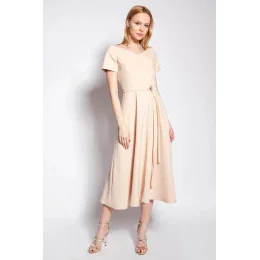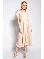 Dámské společenské šaty s límečkem, stužkou a krátkým rukávem dlouhé - Růžová / M - Lemoniade