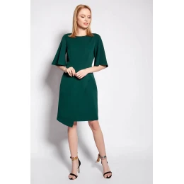 Šaty s vypasovaným spodním dílem, dole překryté. Šaty jsou v pase přestřižené, bez kapes. Šaty s krátkými motýlími rukávy.