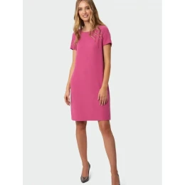 Dámské šaty ke kolenům, jednoduchého střihu, s krátkým rukávem, u krku kulatý výstřih.
