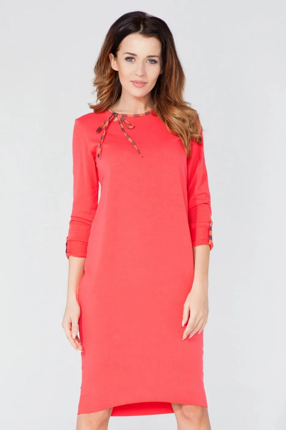 Dámské košilové šaty na knoflíky - model 1 B259 Tmavě oranžová se zelenou vzor - BeWear