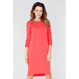 Dámské společenské šaty FOLD se sklady a páskem středně dlouhé červené - Červená - Numoco