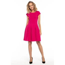 Dámské společenské šaty FOLD se sklady a páskem středně dlouhé červené - Červená - Numoco