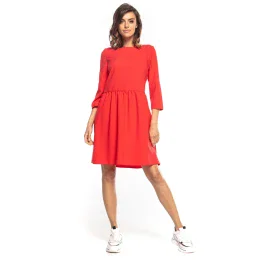 Midi šaty s 3/4 rukávem staženým v pase. Spodní část šatů je mírně rozšířená a horní část více přiléhá.