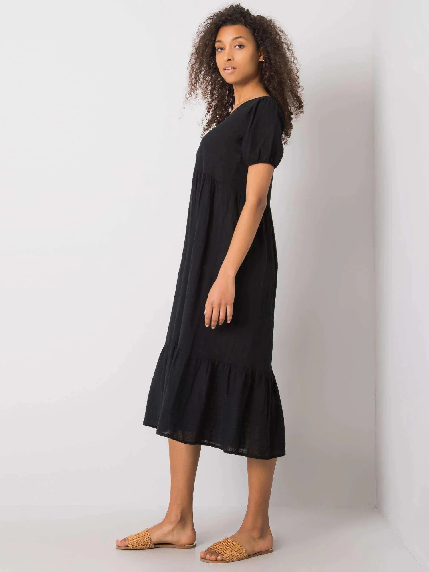 Dámské šaty volný střih 3/4 rukáv vhodné i pro těhotné středně dlouhé grafitové - Černá - BeYou