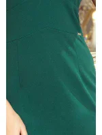 Dámské šaty v lahvově zelené barvě s výstřihem a volánky model 7189824