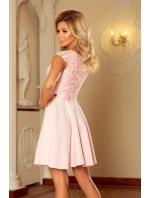 Model je k dostání v pastelově růžové barvě. Vzor krajky se může lišit. Tyto šaty značky Numoco jsou polským výrobkem.