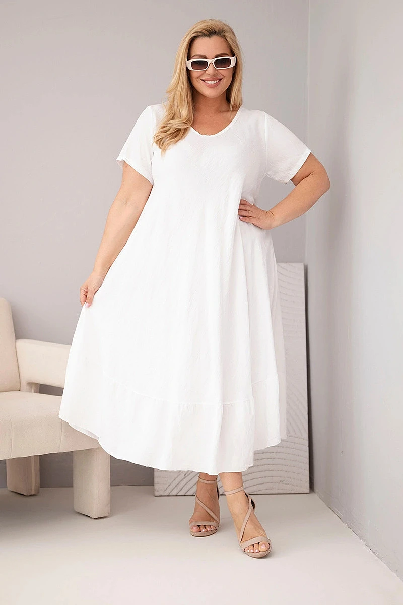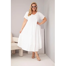 Dámské šaty ve velikosti plus s krátkým rukávem a volánem z lehké viskózy bílá