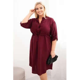Dámské šaty z viskózy Plus Size s knoflíky a vázáním v pase bordová