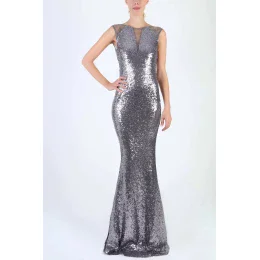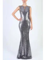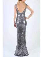 Dámské šaty značky SOKY SOKA bez rukávů flitrové dlouhé stříbrné