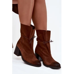 Dámské semišové botky na podpatku Zazoo – hnědé
