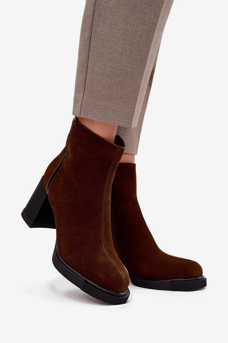 Dámské semišové botky Vinceza – na sloupkovém podpatku, hnědé