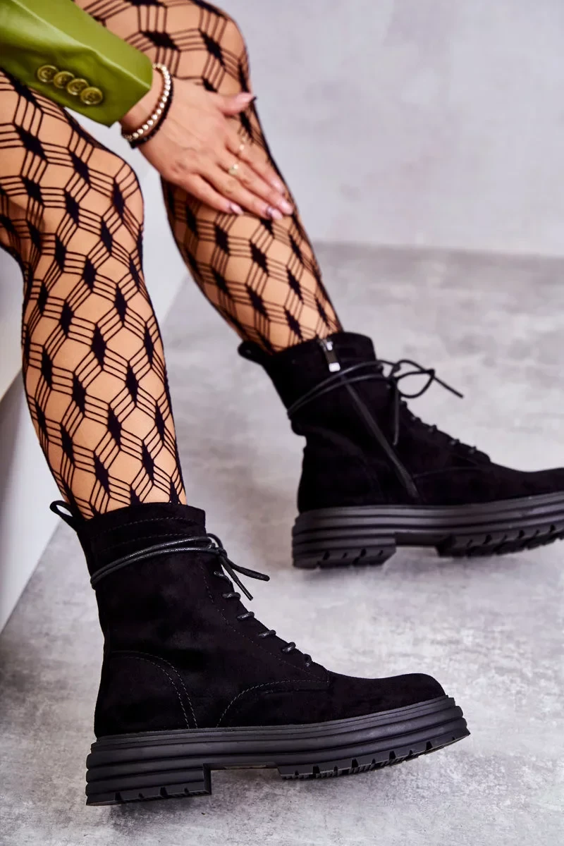 Klasické kozačky s kotníkovým svrškem jsou vyrobeny z vysoce kvalitní eko kůže. Tento model má zip na boku svršku a klasické šněrování vpředu. Navíc mají vyztuženou patu. Jsou nasazeny na jemné platformě a plochých podpatcích. Nemají izolaci. Tento model bude ideální pro mnoho stylů! Při výběru velikosti použijte tabulku velikostí.