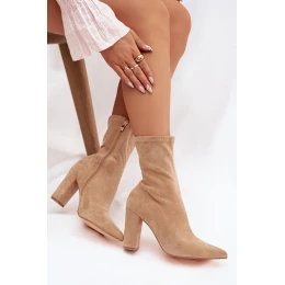 Elegantní dámské kotníkové boty vyrobené z eko semiše jsou model, který podtrhne každý styl. Umístěné na stabilním sloupkovém podpatku, zajišťují pohodlí a ženský vzhled, a špičaté nosky opticky prodlužují nohy. Zapínají se na praktický zip, což usnadňuje obouvání a sundávání. Jemné švy na svršku tvoří stylový detail, který tento model odlišuje. Ideální jak do běžných, tak do elegantních outfitů. Při výběru velikosti se řiďte tabulkou velikostí. Při výběru velikosti se řiďte tabulkou velikostí.