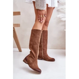 Dámské kozačky vyrobené z vysoce kvalitní přírodní velurové kůže. Zapínání na zip na boku. Umístěné na plochém podpatku. Nemají zateplení. Špičky jsou zaoblené. Paty jsou zpevněné. Pohodlný a komfortní model. Tento klasický styl se skvěle hodí do mnoha stylizací! Při výběru velikosti se řiďte tabulkou velikostí.