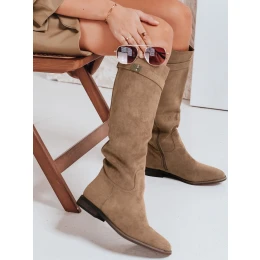 Dámské semišové kozačky na nízkém podpatku béžové FashionStreet ZY1088