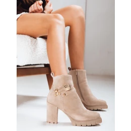 Dámské semišové kozačky na podpatku béžové FashionStreet ZY1265