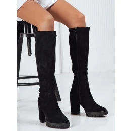 Dámské semišové kozačky na podpatku černé FashionStreet ZY1241