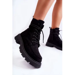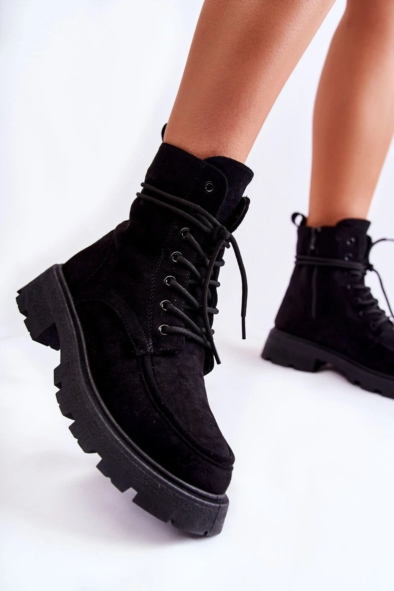 Dámské semišové kozačky zavazované Černá Vanita