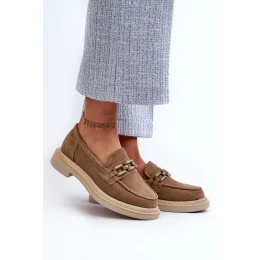 Dámské mokasíny vyrobené z přírodního semiše. Plochý podpatek zaručuje stabilitu a pohodlí při chůzi. Další ozdobný prvek vpředu jim dodává originalitu, což je činí nejen praktickými, ale také módními. Tyto mokasíny budou ideálním doplňkem k mnoha různým stylizacím, jak ležérním, tak i elegantnějším. Při výběru velikosti se řiďte tabulkou velikostí.