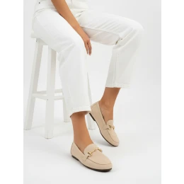 Dámské semišové mokasíny s kovovou přezkou béžové FashionStreet ZY1341