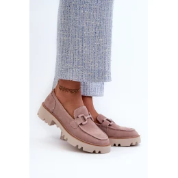 Dámské mokasíny vyrobené z přírodního semiše. Umístěné na ploché podrážce. Dalším ozdobným prvkem vpředu získávají výjimečný šarm, což z nich činí originální doplněk ke každému outfitu. Ať už jdete na setkání s přáteli nebo na formálnější událost, tyto mokasíny budou skvělým doplňkem vašeho looku a dodají mu špetku jemné elegance. Při výběru velikosti se řiďte tabulkou velikostí.