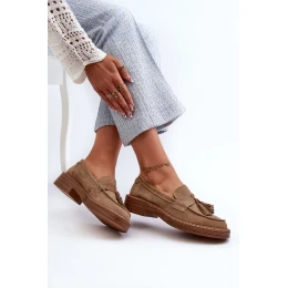 Dámské mokasíny vyrobené z přírodního semiše. Nasazené na plochém stabilním podpatku. Třásně jim dodávají jedinečné kouzlo. Tyto mokasíny budou dokonalým doplňkem mnoha různých stylů, jak ležérních, tak elegantnějších. Při výběru velikosti se řiďte tabulkou velikostí.