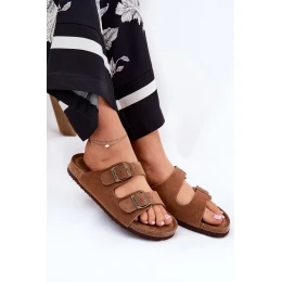 Dámské semišové pantofle s přezkami Big Star – hnědé