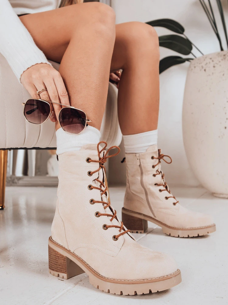 Dámské semišové šněrovací boty béžové FashionStreet ZY1235