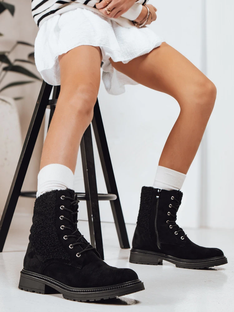 Dámské semišové šněrovací boty černé FashionStreet ZY1231