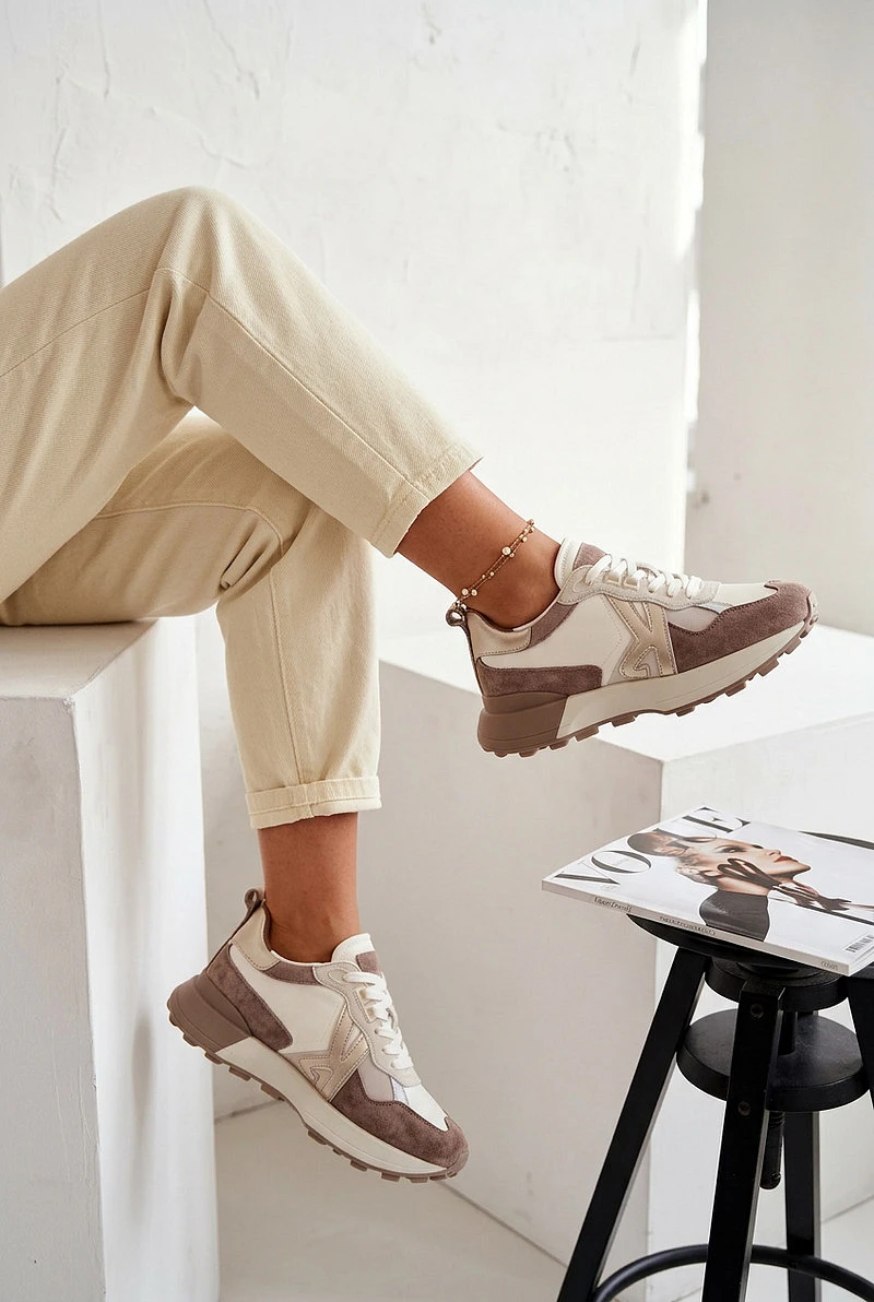 Dámské tenisky vyrobené ze spojení přírodního semiše a textilního materiálu jsou stylovým a pohodlným modelem pro každodenní nošení. Kombinace různých materiálů dodává moderní vzhled a zajišťuje komfort při nošení. Vrchní část je zdobena ozdobnými vložkami a švy, které zdůrazňují sportovní styl obuvi. Klasické šněrování umožňuje dobré přizpůsobení tvaru nohy a zvyšuje stabilitu při chůzi. Model má vložku z přírodní kůže, která zlepšuje pohodlí a poskytuje vhodný komfort i při delším nošení. Při výběru velikosti se řiďte tabulkou velikostí.