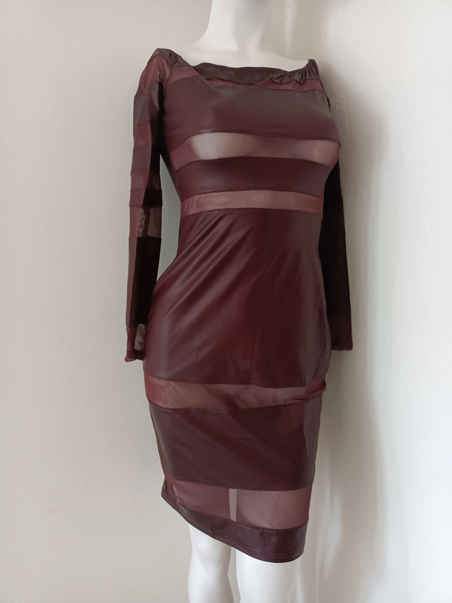 Dámské sexy šaty s imitací koženky, rafinovaně prošívané tylem.