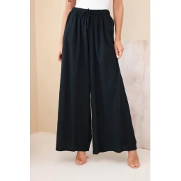 Dámské široké bavlněné kalhoty s gumou v pase černé