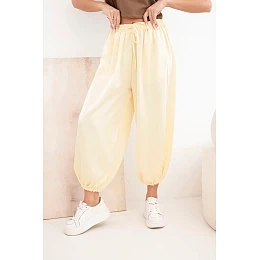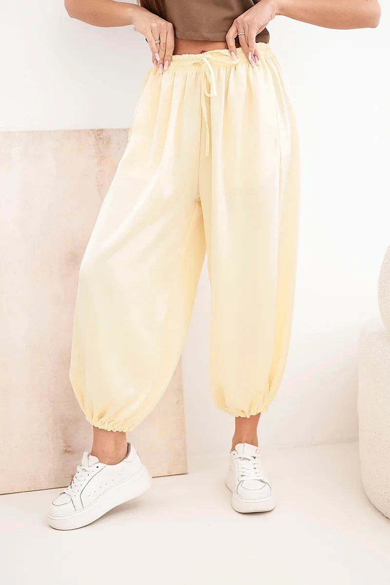 Dámské široké kalhoty s gumou v pase a zavazováním ve stylu aladinek žluté