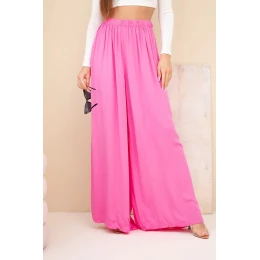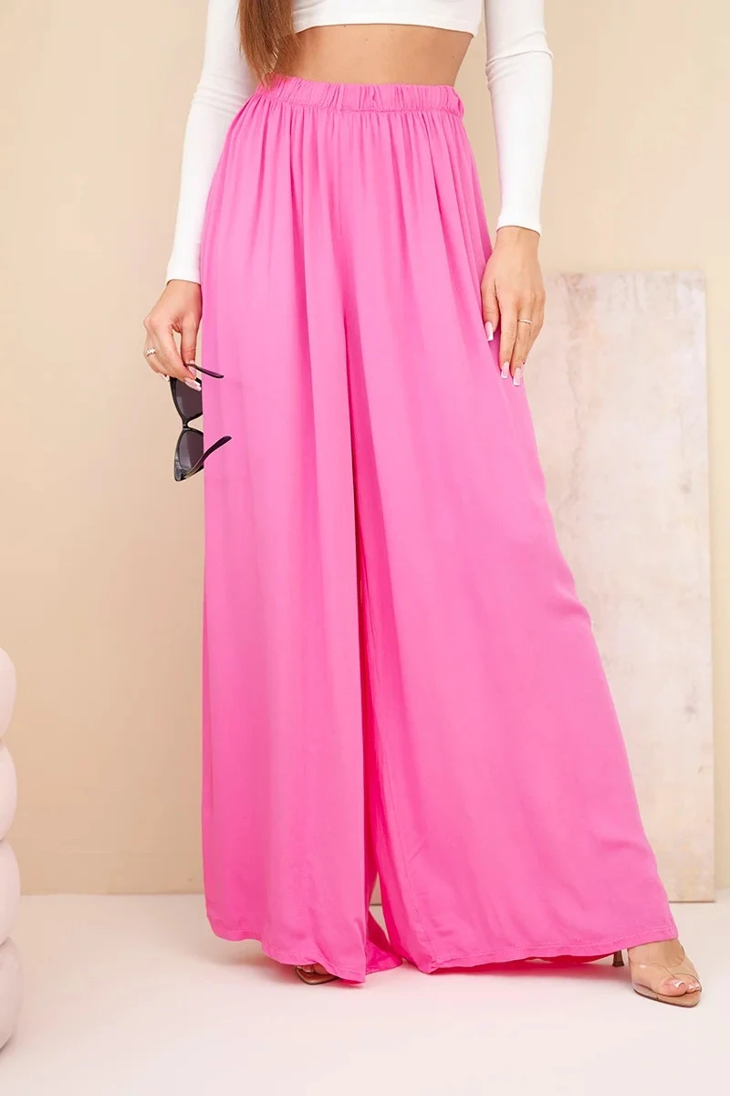 Dámské široké viskózové kalhoty s gumou v pase růžové
