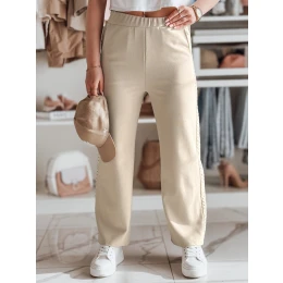 Žebrované kalhoty se širokými nohavicemi a elastickým pasem pro pohodlné a lichotivé nošení. Ozdobná krajka na bocích nohavic pro lehký a stylový nádech. Dvě ozdobné kapsy na přední straně. Univerzální velikost padne od XS do L. Model kombinuje ležérní styl s elegantními detaily, které se hodí k mnoha outfitům.