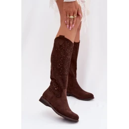 Dámské síťované kozačky na nízkém podpatku S.Barski HY61-8023 Čokoládové