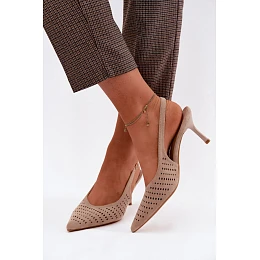 Dámské síťované sandály na podpatku z umělé semiše Béžové Torielle