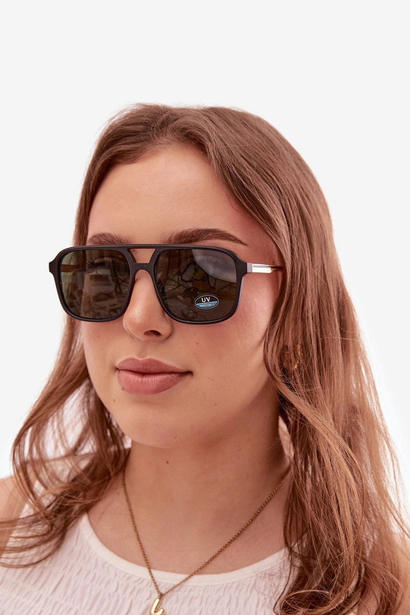 Stylové sluneční brýle s UV filtrem jsou spojení stylu a účinné ochrany očí. Díky UV filtru chrání před škodlivým slunečním zářením a zajišťují pohodlné vidění v slunečných dnech. Model se vyznačuje zajímavým, originálním tvarem, který přitahuje pozornost a tvoří výrazný doplněk každého outfitu. Brýle jsou dostupné v různých barvách, což umožňuje přizpůsobit je individuálnímu stylu a příležitosti. Ideální jak na každodenní nošení, tak na dovolené.