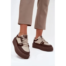 Dámské sneakersy na platformě Big Star SS274356 leopardí hnědo-bežové