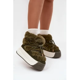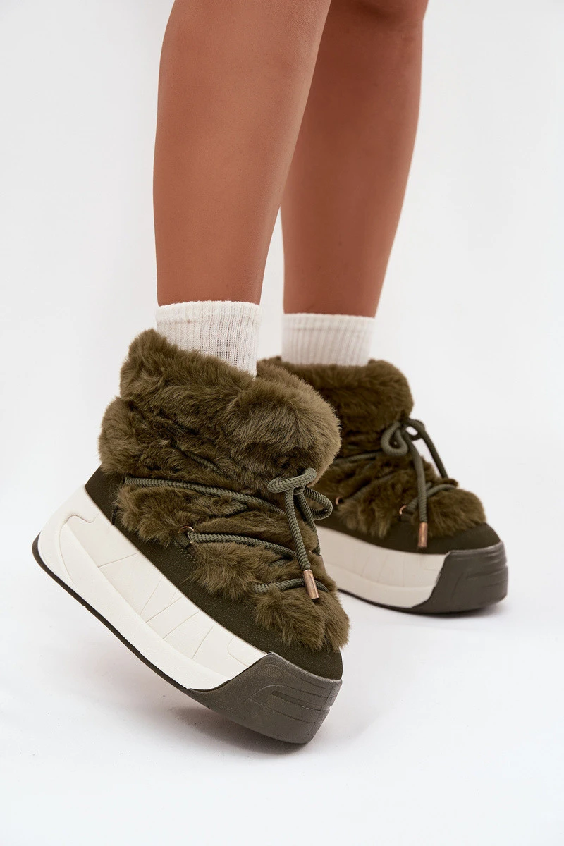 Dámské sněhule na masivní platformě s tkaničkami a kožešinou Kalivira