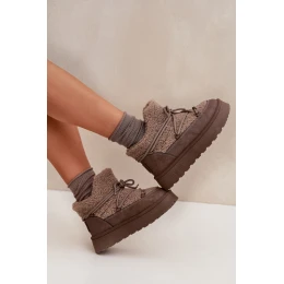 Stylové dámské sněhule Big Star v hnědé barvě na módní platformě. Vnitřní zateplení hebkým kožíškem typu beránek zaručí teplo a pohodlí i v chladném počasí.