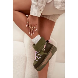 Stylové dámské sněhule D.Franklin v khaki odstínu s moderní zvýšenou platformou kombinují pohodlí a trendy vzhled. Teplé zateplení zajistí komfort i při nízkých teplotách, zatímco lehká a flexibilní podrážka poskytuje bezpečný a stabilní krok. Platforma izoluje nohu od zimní země a dodává botám elegantní siluetu.