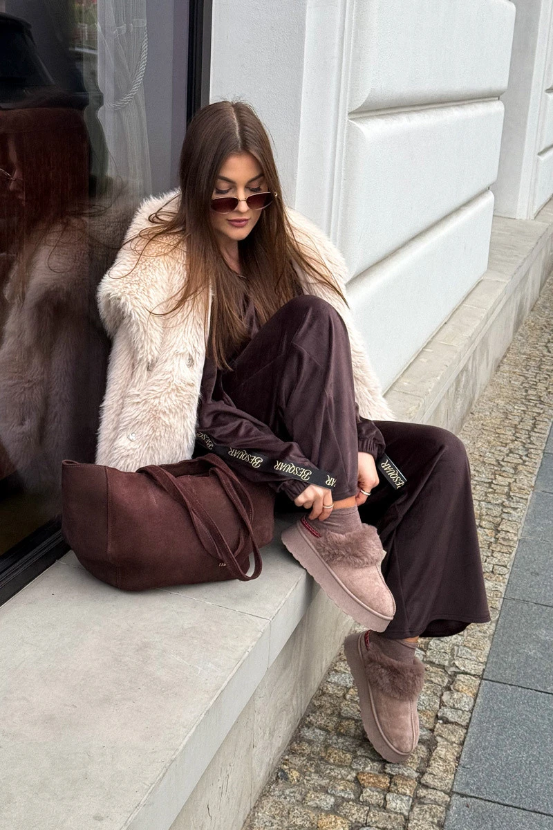 Dámské sněhule vyrobené z eko semiše jsou spojení stylu a funkčnosti, ideální na chladnější dny. Umístěny na pevné platformě, zajišťují pohodlí a stabilitu při chůzi. Vnitřek a horní část obuvi jsou vypletené měkkým kožíškem, který zaručuje teplo a příjemné obklopení nohou. Dalším bonusem je ozdobné vyšívání, které dodává jedinečný, módní charakter. Jsou to stylové sněhule, které se skvěle hodí na každodenní použití. Při výběru velikosti prosíme řídit se tabulkou velikostí. Při výběru velikosti se řiďte tabulkou velikostí.