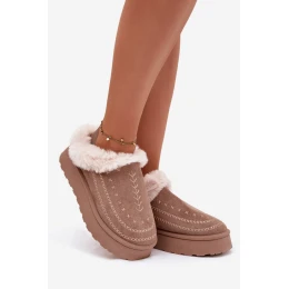 Dámské sněhule na platformě s kožíškem a dekorativním prošíváním – tmavě béžové Arelina