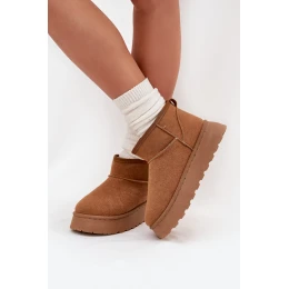 Dámské sněhule na platformě s kožíškem Vesirae – camel