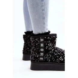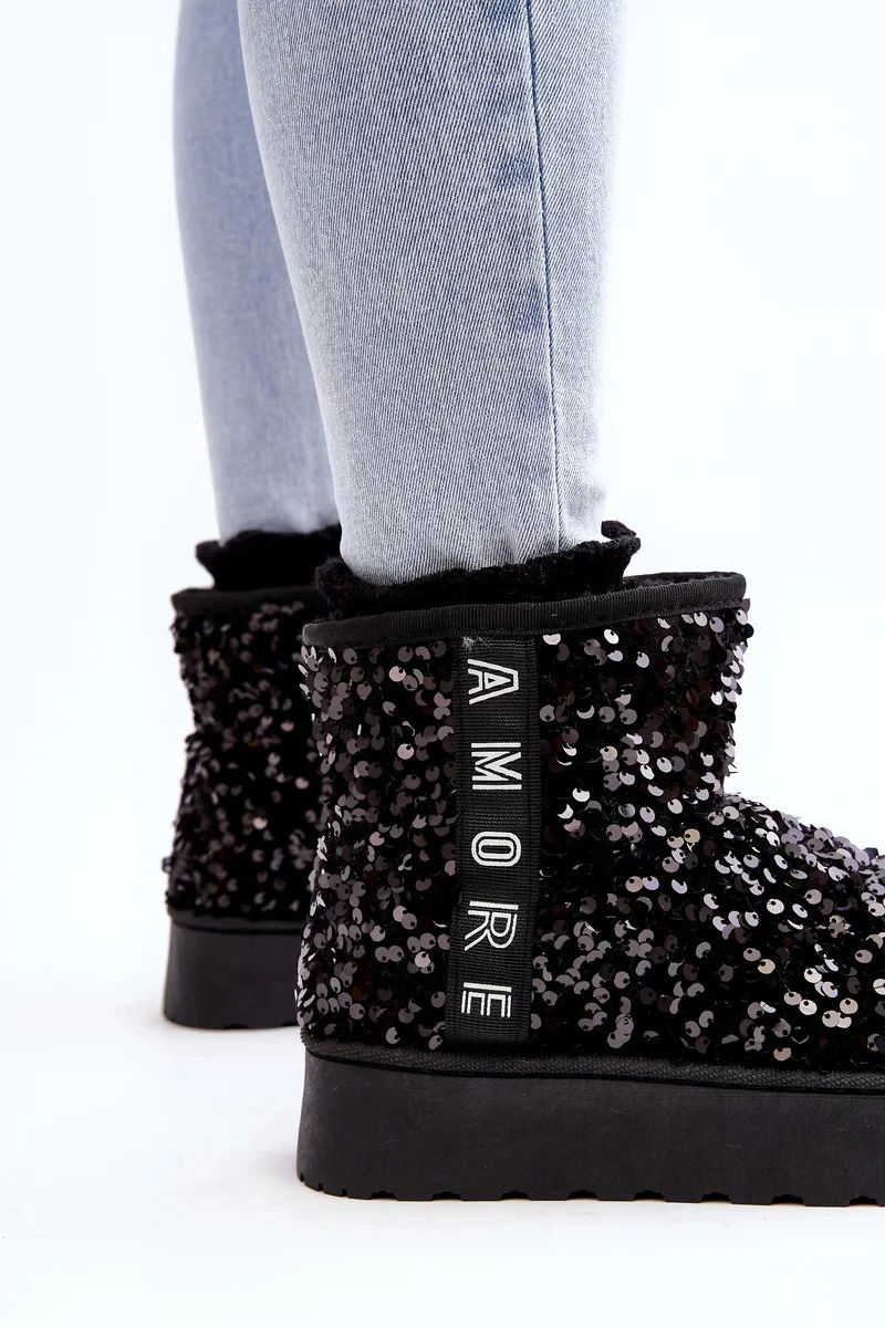 Dámské sněhule na platformě zdobené flitry, černá Silmo