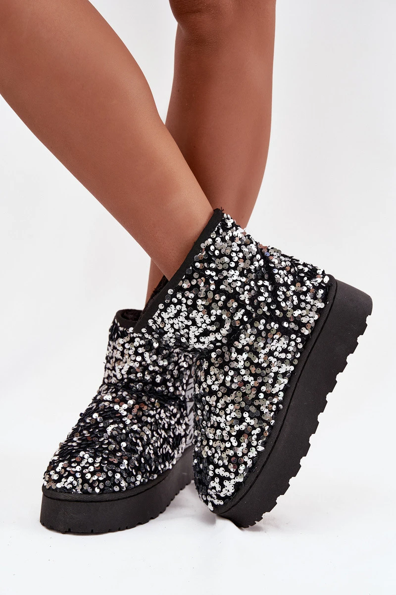 Dámské sněhule na platformě zdobené flitry černo-stříbrné Silmo